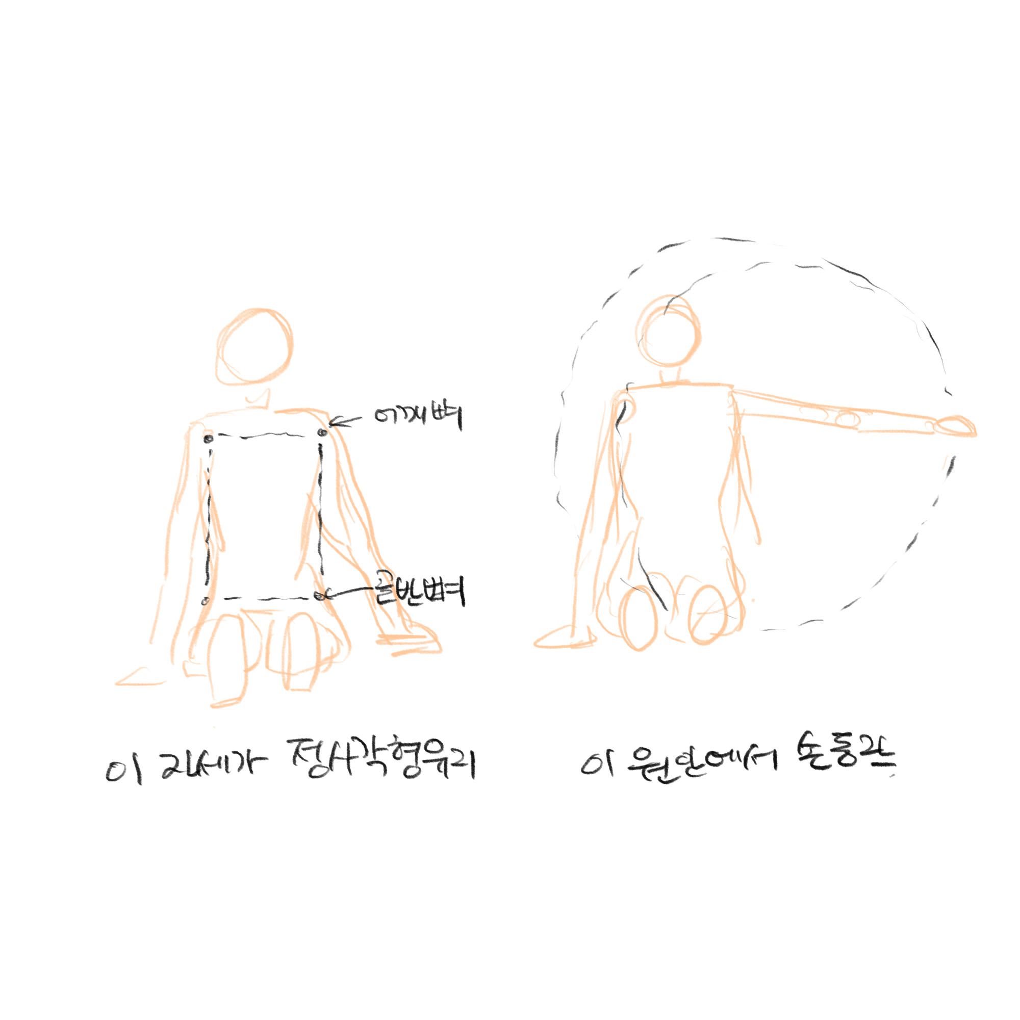 몸통 사각형형태로 유지하고 손 동작은 저 원안에서 한다고 하면 된다고 함