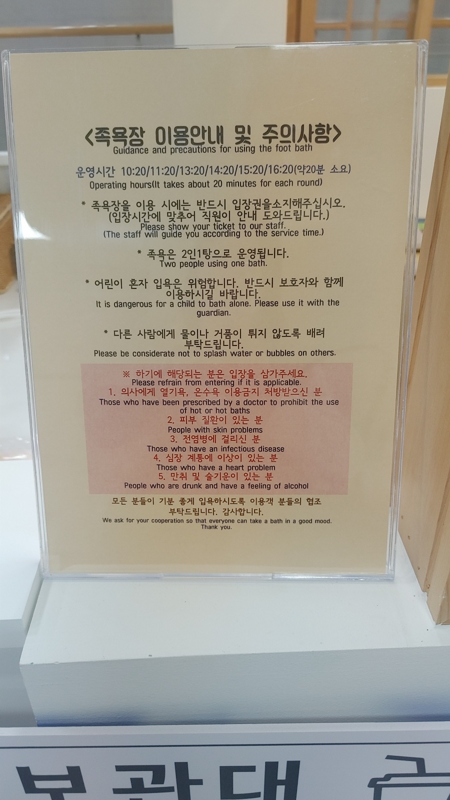 저번에 2월에 갔을땐 추워서 족욕체험이 없었는데 3월부터 생겨서 족욕체험도 했다.