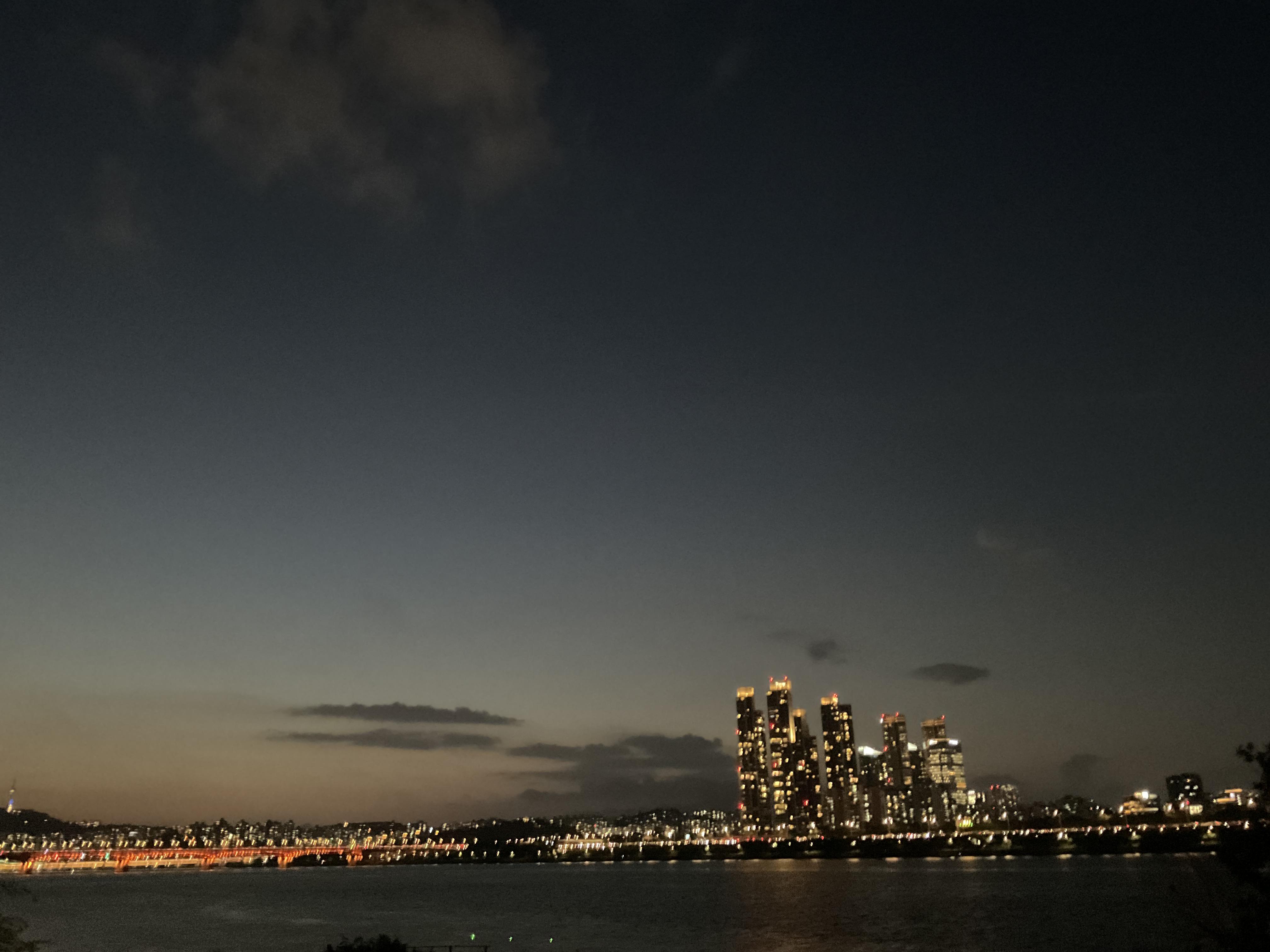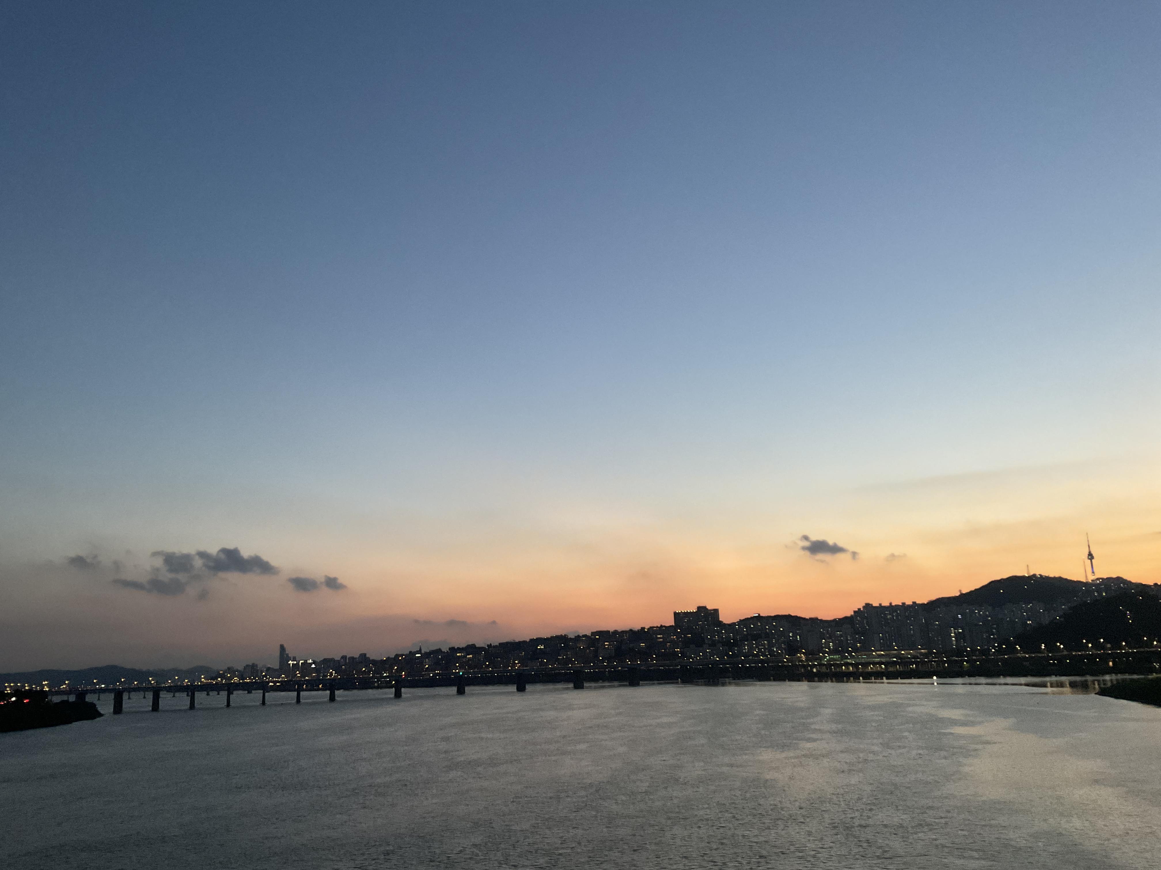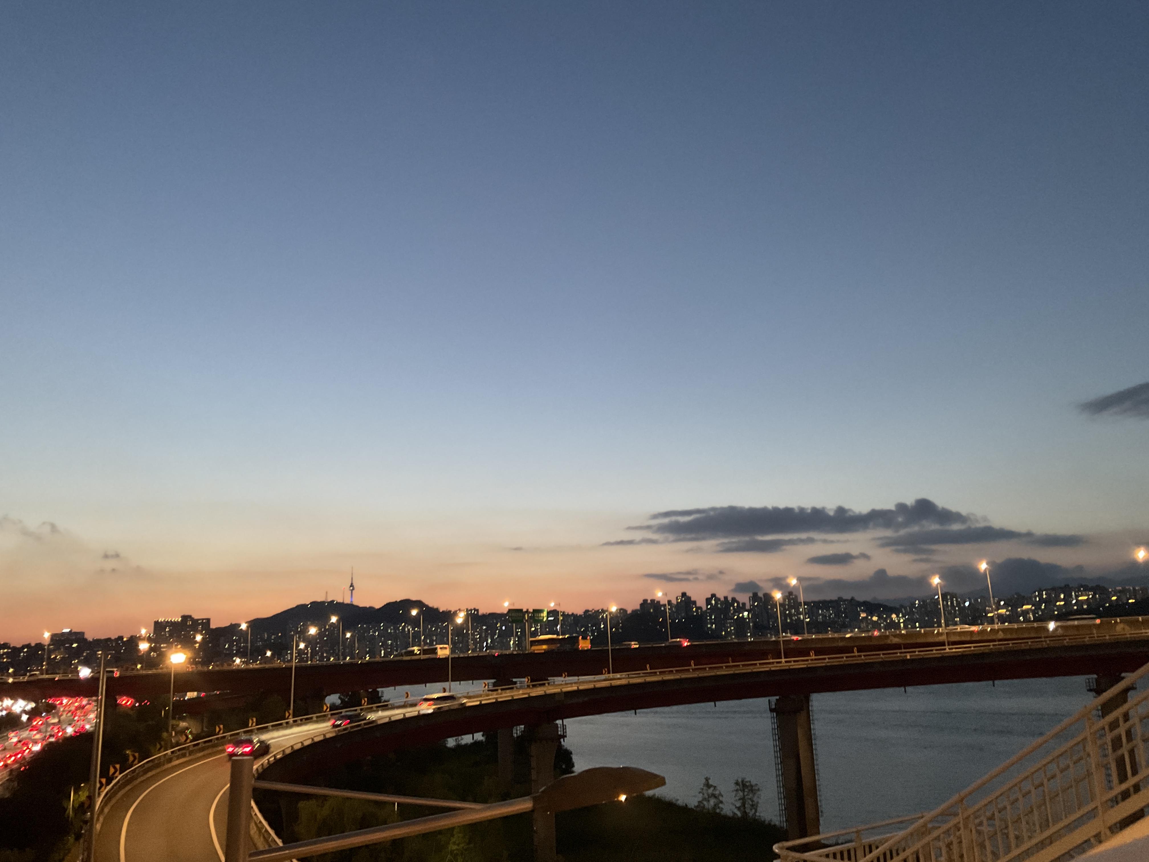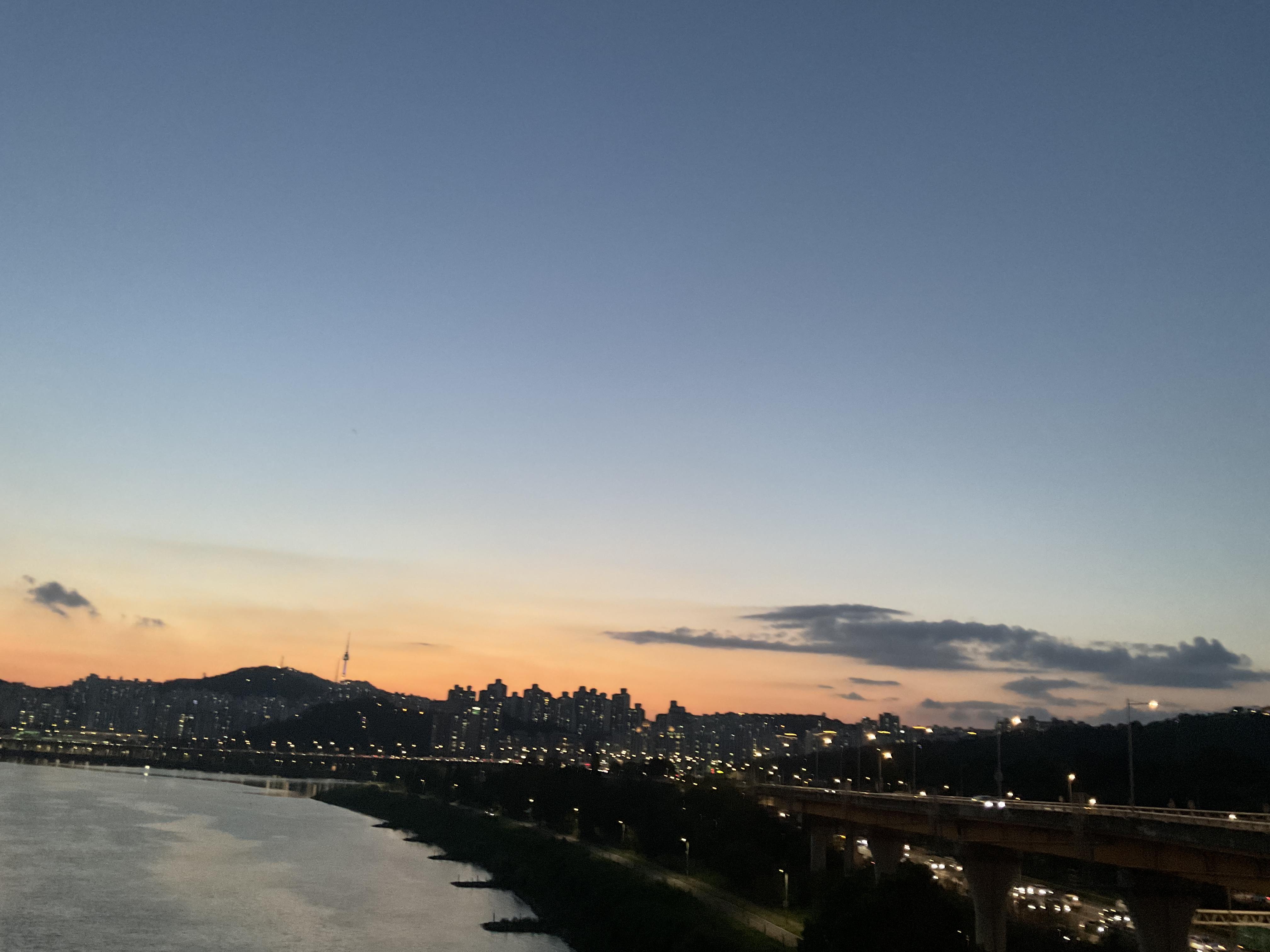 한강 따라 가는 길인데 아직까지 날이 길어 노을을 볼수 있어서 좋았다.