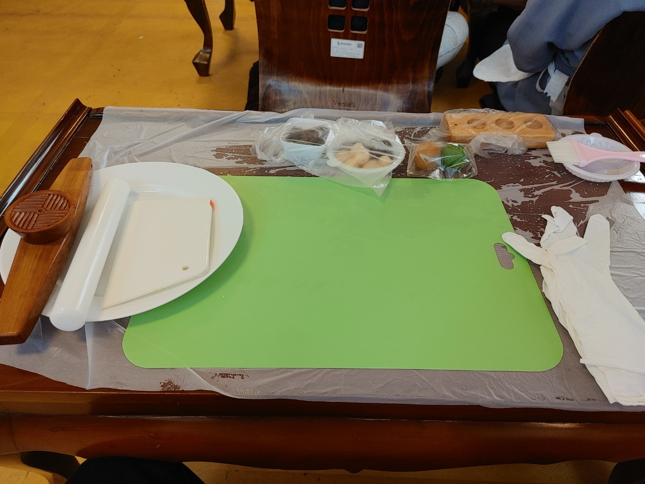 다행히 떡에 대해 유래 설명 중이여서 만드는건 어렵지 않았다 기본재료는 반죽이 다되어있어 찰흙놀이느낌이 났다. 게다가 재료도 좋은거 쓰시고 포장해가는 케이스도 예쁜걸로 주셔서 클래스 비용보다 배로 주신 거 같았다.