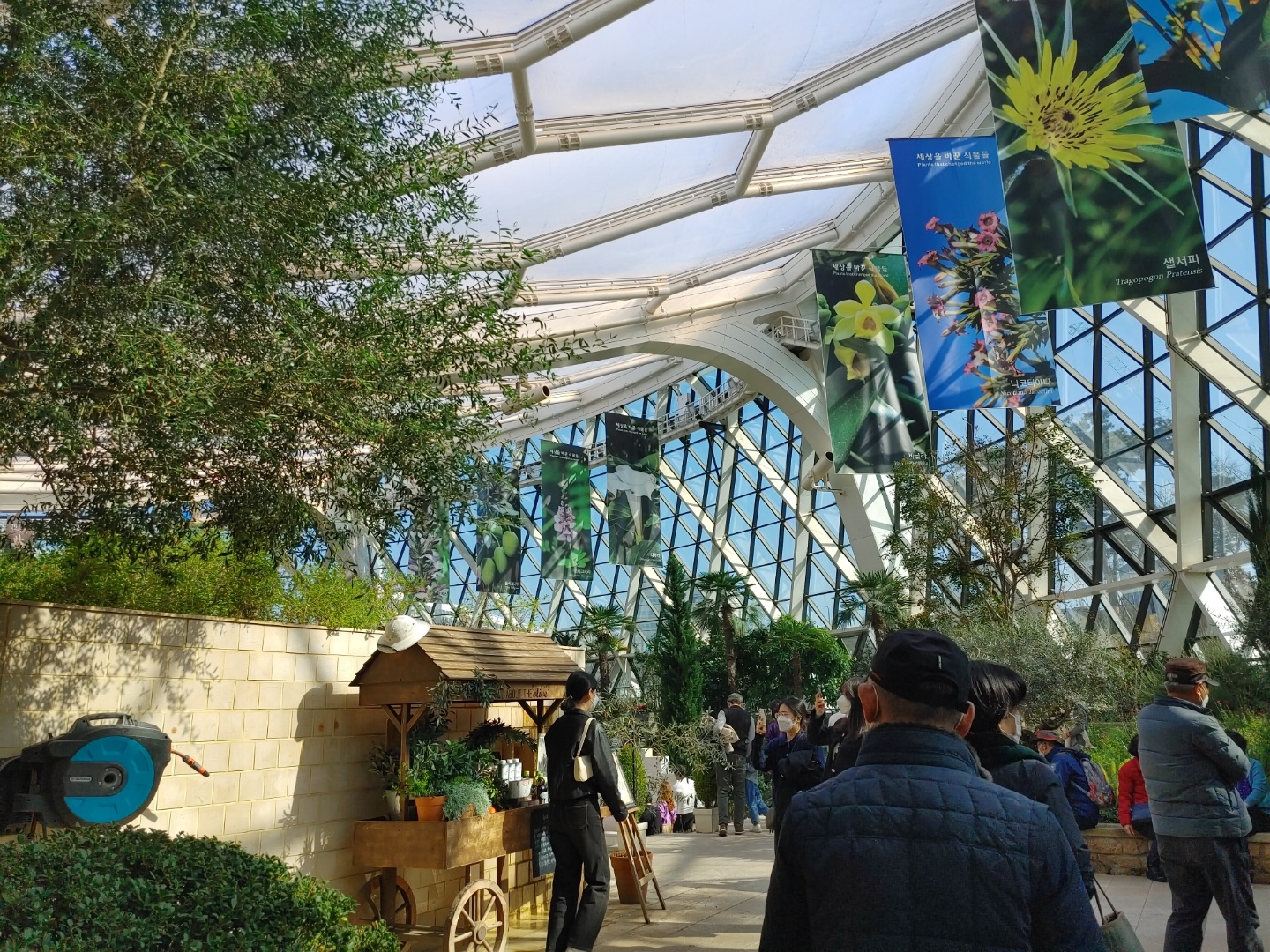 건물 안에 들어니 사람들이 상당히 있는 걸보고 음,,,매표소에서 어른 5,000원 내고 온실갔는데 여기만와도 입장료가 안아까울만큼 잘 꾸며놨다. 구석구석 포토존와 여러식물, 나무, 꽃이 여기저기 즐비해 자세히 안보고 막 돌악다녀도 30분이상이 걸릴 정도로 넓었다.