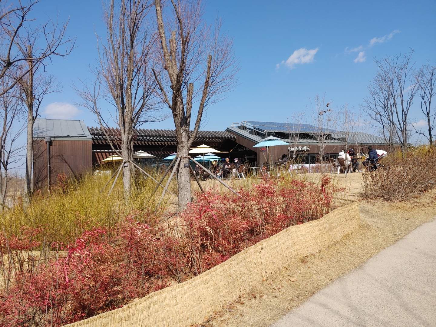 마곡나루역 2번 출구에서 나와 공원있는대로 가면 언덕길이 있는데 여기를 올라가면 카페와 더 올라가면 흰 곡선형태가 띄는 건물이 눈에 들어온다.