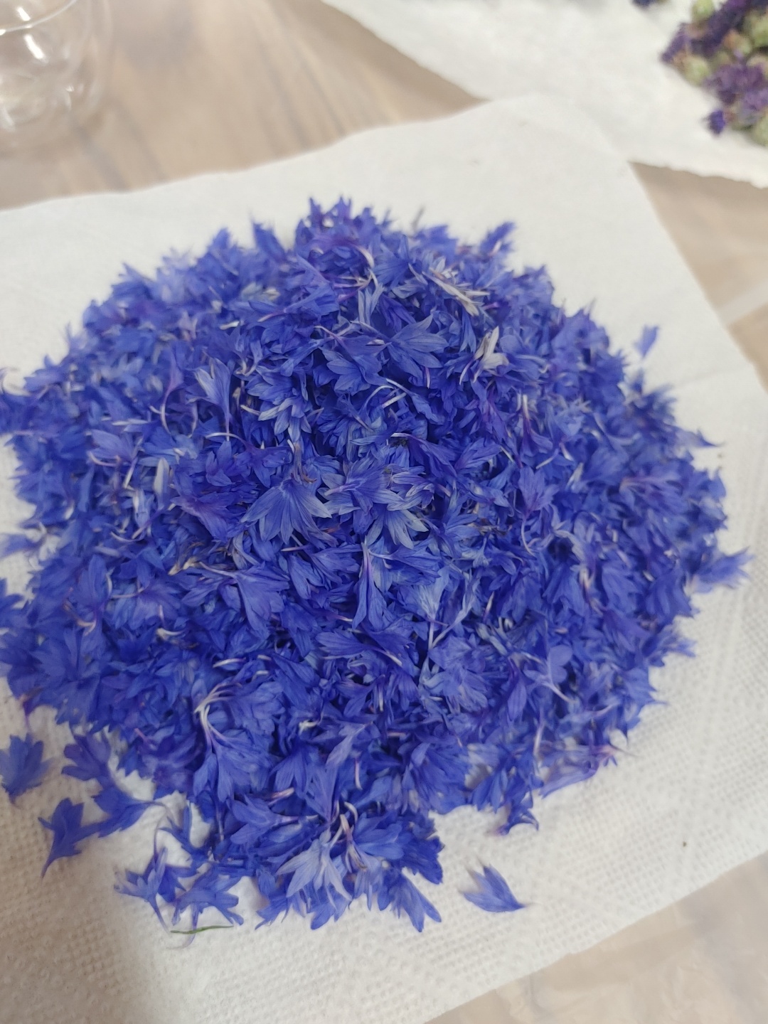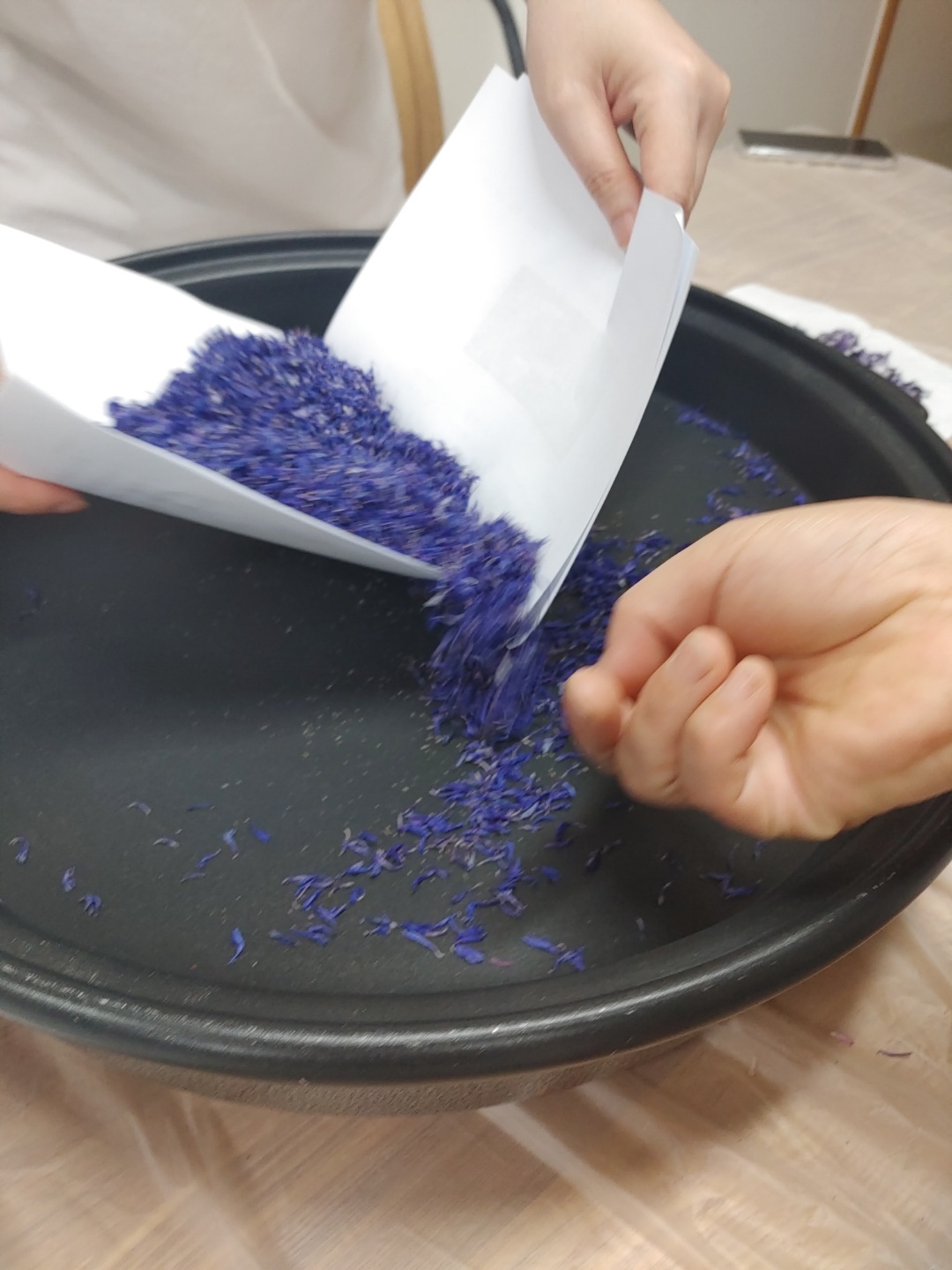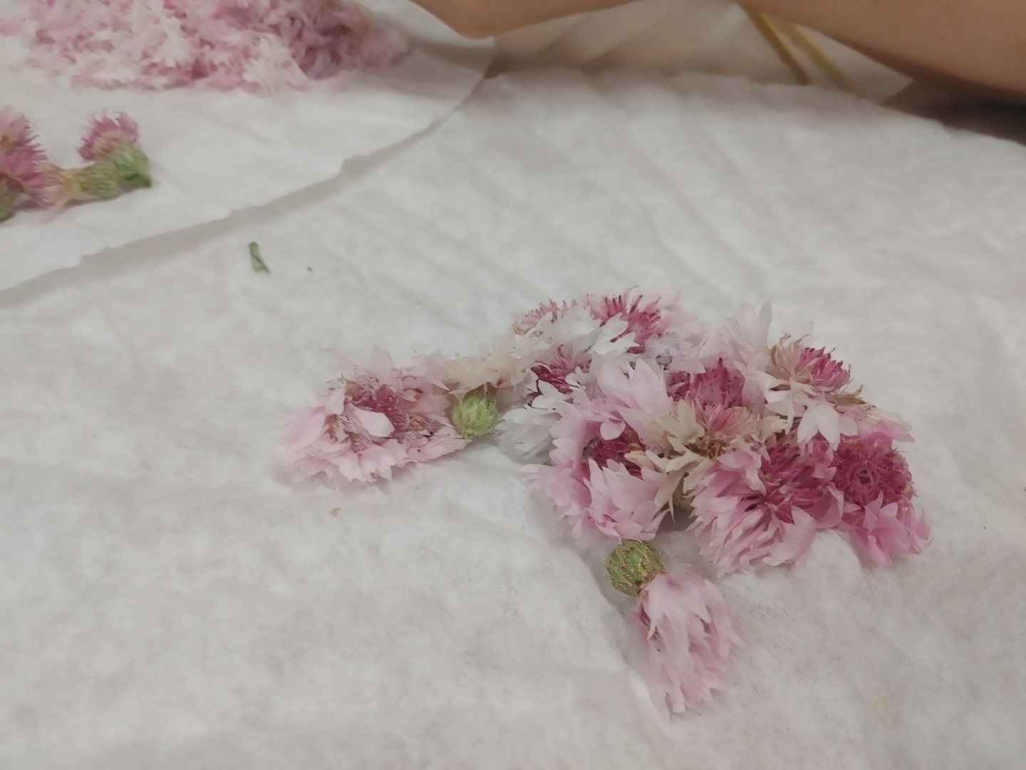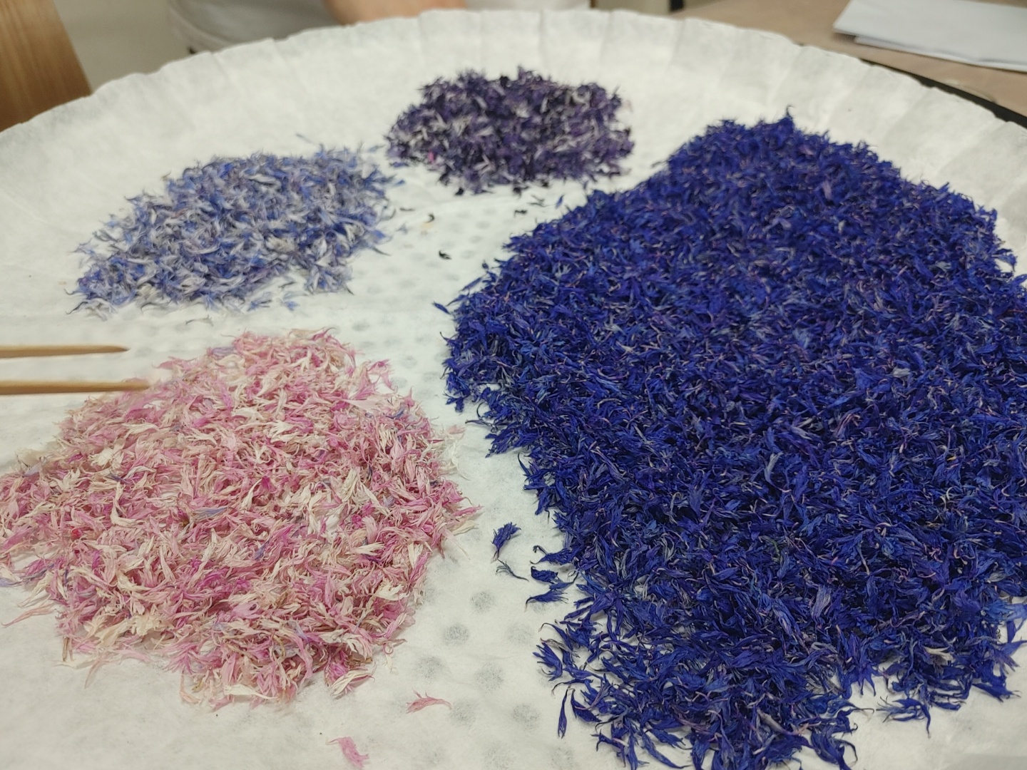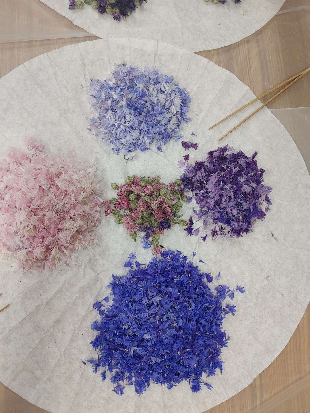 수레국화는 파랑색만 있는게 아니라 분홍색, 흰색, 연보라색, 보라색 등등 여러 색상이 있어서 색별로 분리해서 준비했었다.
