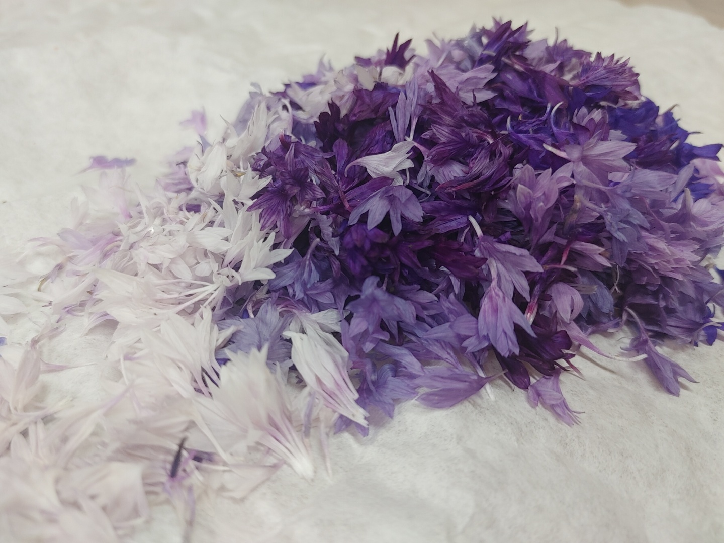 수레국화는 파랑색만 있는게 아니라 분홍색, 흰색, 연보라색, 보라색 등등 여러 색상이 있어서 색별로 분리해서 준비했었다.