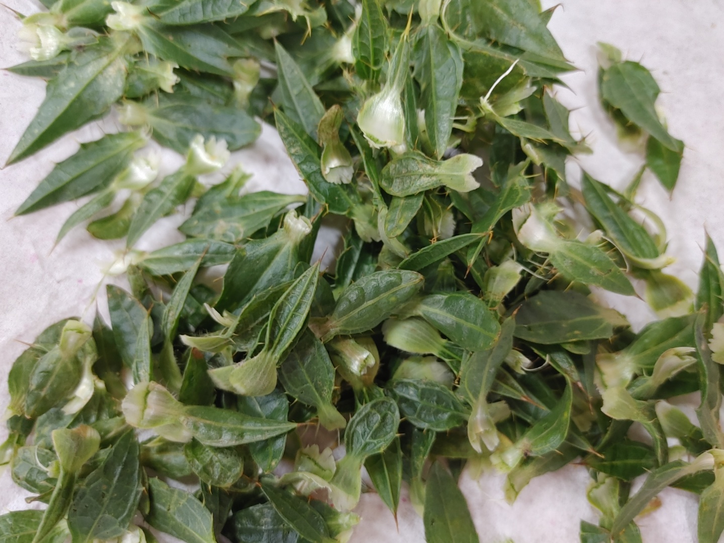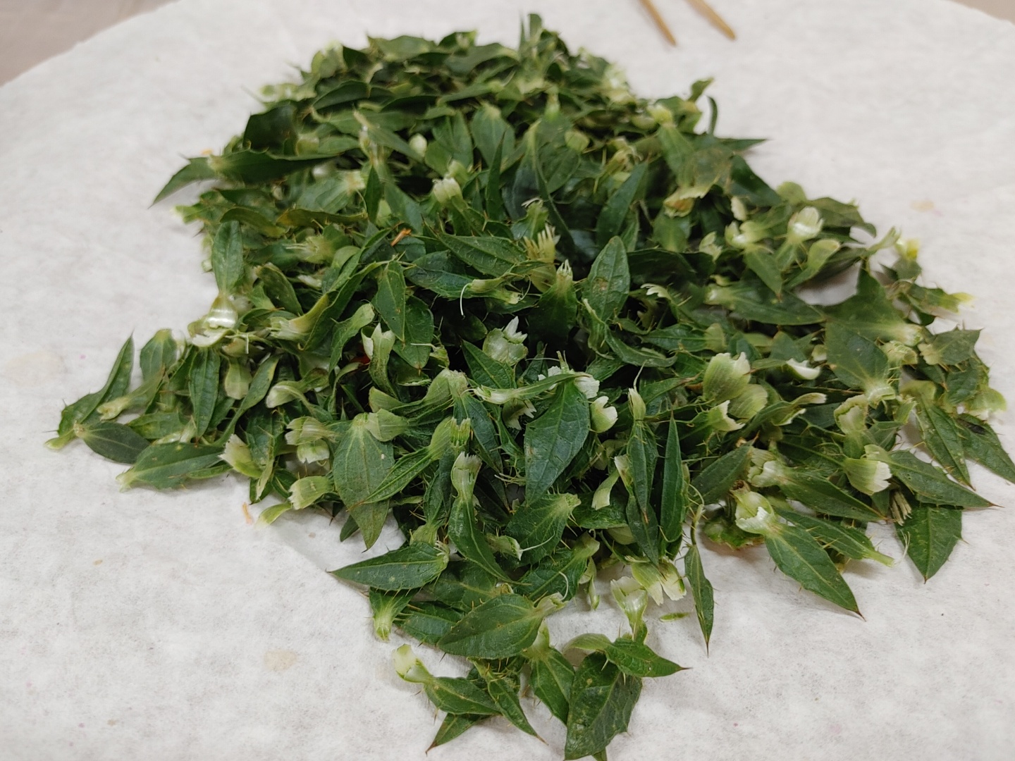 꽃과 잎을 분리한다. 잎에 가시가 있으므로 꼭 장갑 끼고 해야한다. 꽃근처의 잎사귀 몇개는 남겨놔야 꽃이 안부르러진다고 한다. 맨손일 경우 조심조심하고 잎사귀는 잎차 만든다고 따로 모았다. 꽃의 줄기 부분은 가운데 사진처럼 판다. 잎차는 파는게 아니라 이렇게 개인이 먹을거만 만들어 먹을때 한다고 한다.