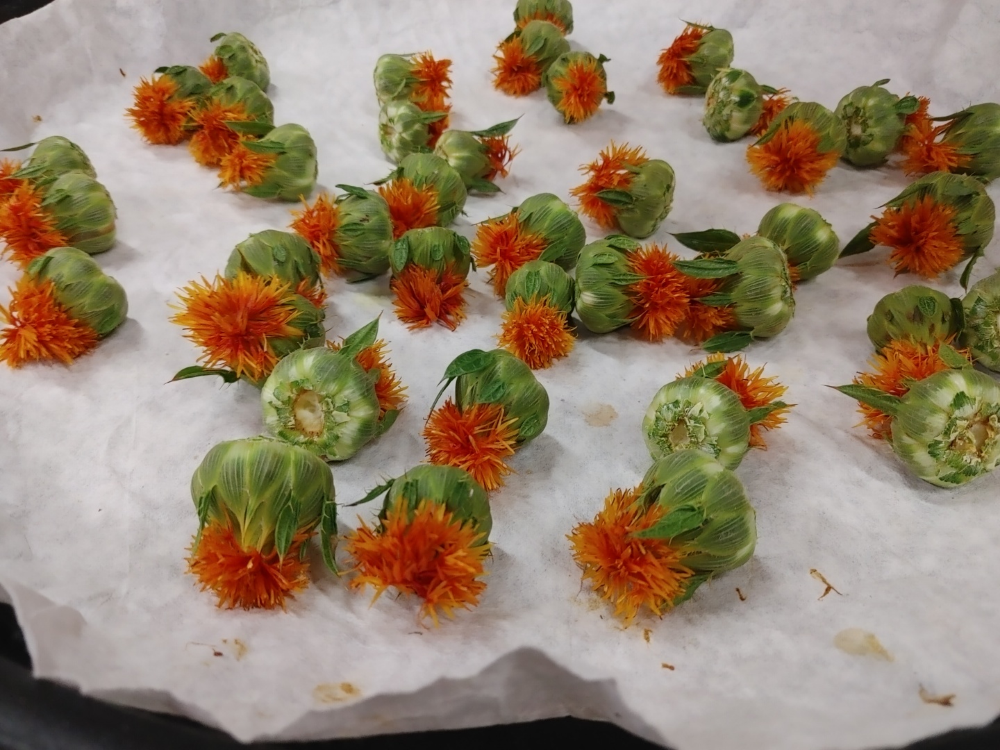 오늘은 홍화 꽃차를 만들기 수업을 했다. 직접보는 거 처음이었는데 와 색감도 너무 예뻤다. 꽃차내린 물 색상도 노란빛이 찐하게 돌아서 좋았다. 동글동글한데 주황색꽃 귀여운데 얘가 손질한때 반전이 있었다.ㅋㅋㅋ저 초록색 잎사귀마다 가시가ㅋㅋㅋ와 그래서 선생님이 장갑가지고 오라고 하신거구나ㅜ