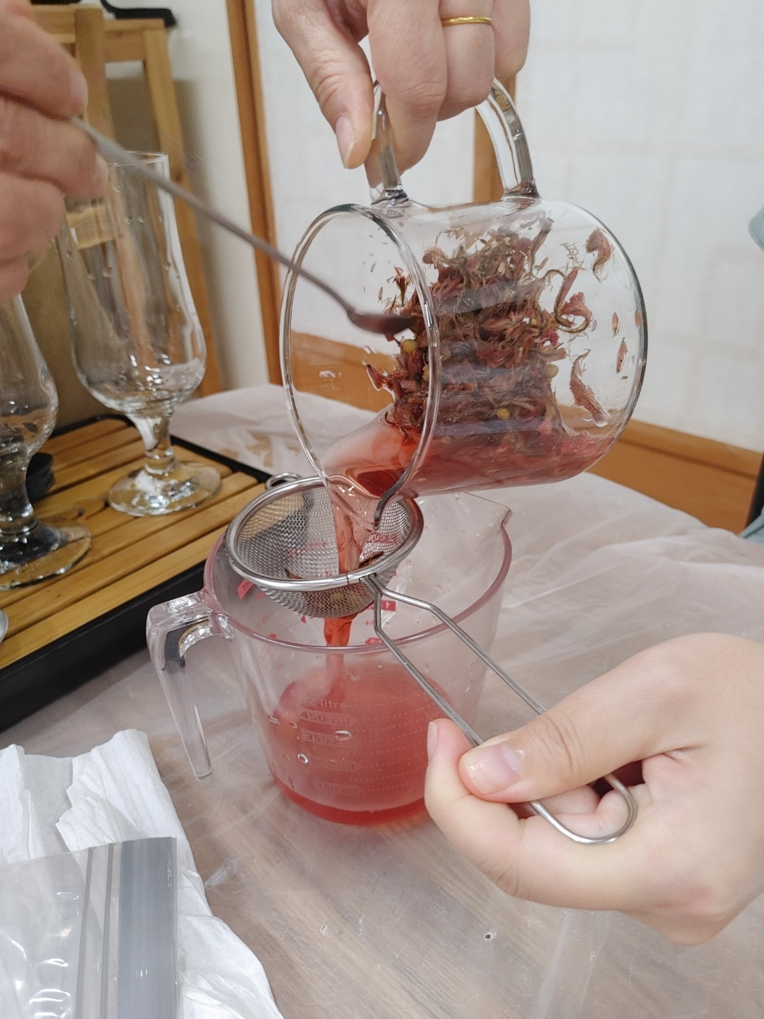 맨드라미꽃으로 꽃음료를 만드는 수업을 했다. 이건 거의 수업에서 하는 경우가 없어서 운이 좋다고 하셨다. ㅋ