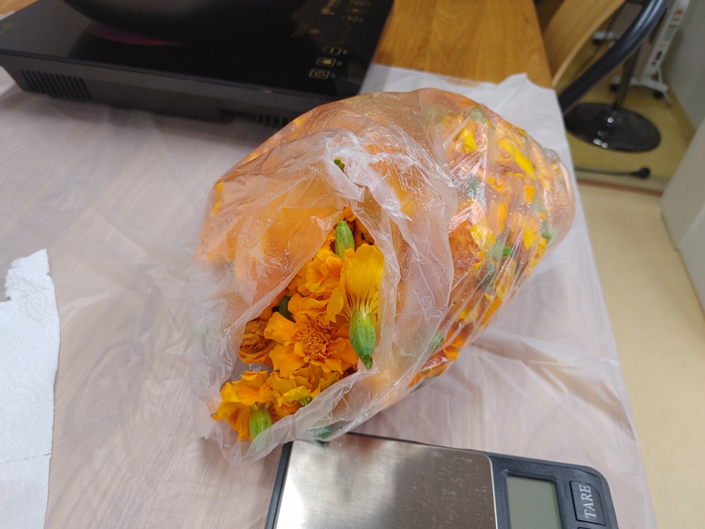 메리골드 300g(작은 투명 비닐봉투 꽐 찰정도) , 물 1L, 설탕 1kg, 레온 1개