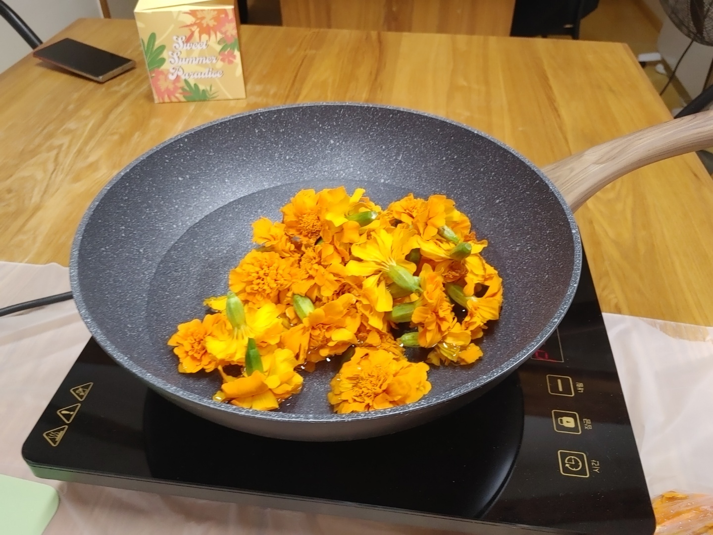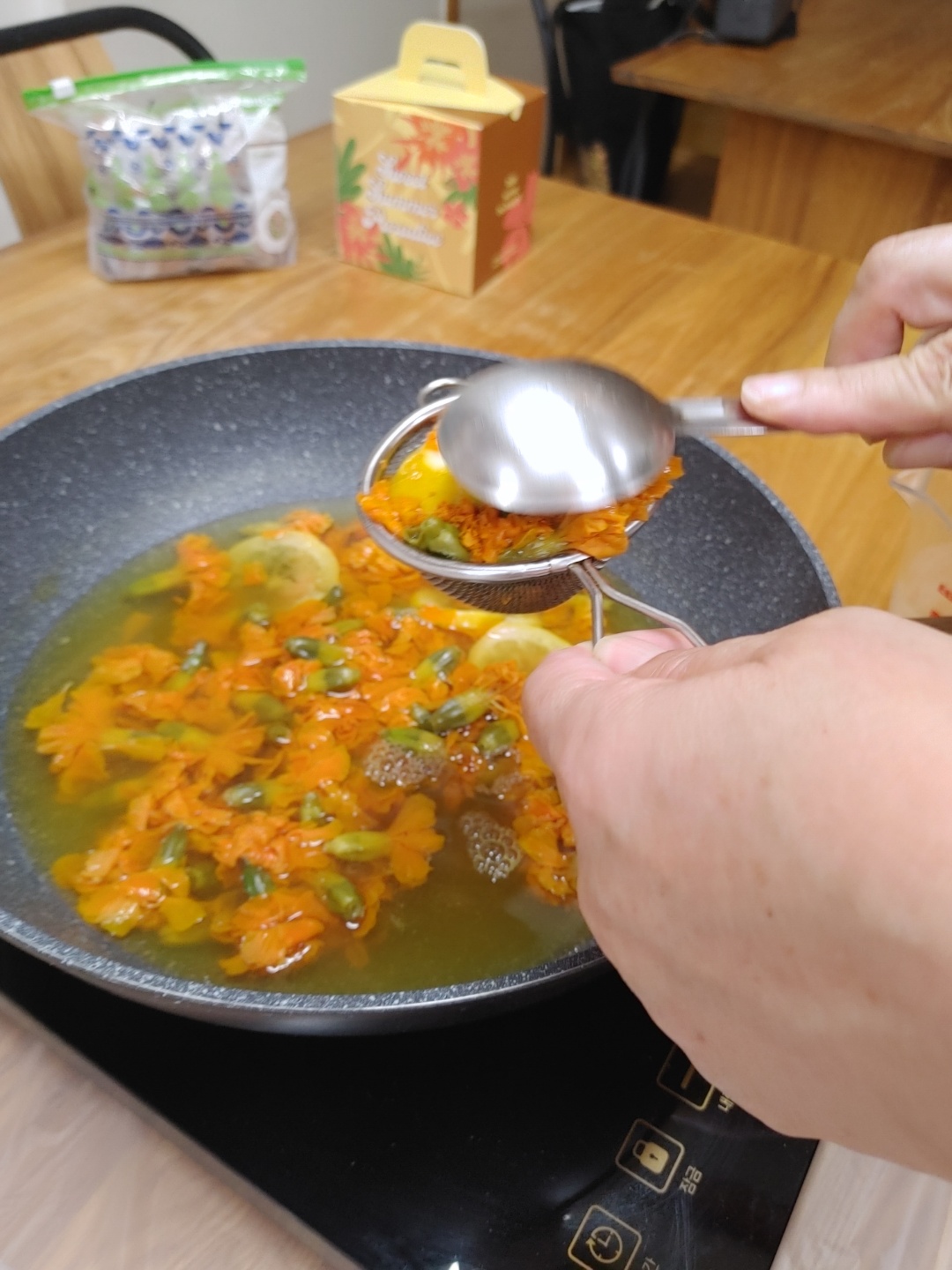 오늘은 메리골드로 만든 꽃 음료인데 다르때와 다르게 덖은 꽃차가 아닌 생화를 이용한 액기스(?)화된 음료이다. 난 개인적으로 이게 제일 맛있었다.ㅋㅋ