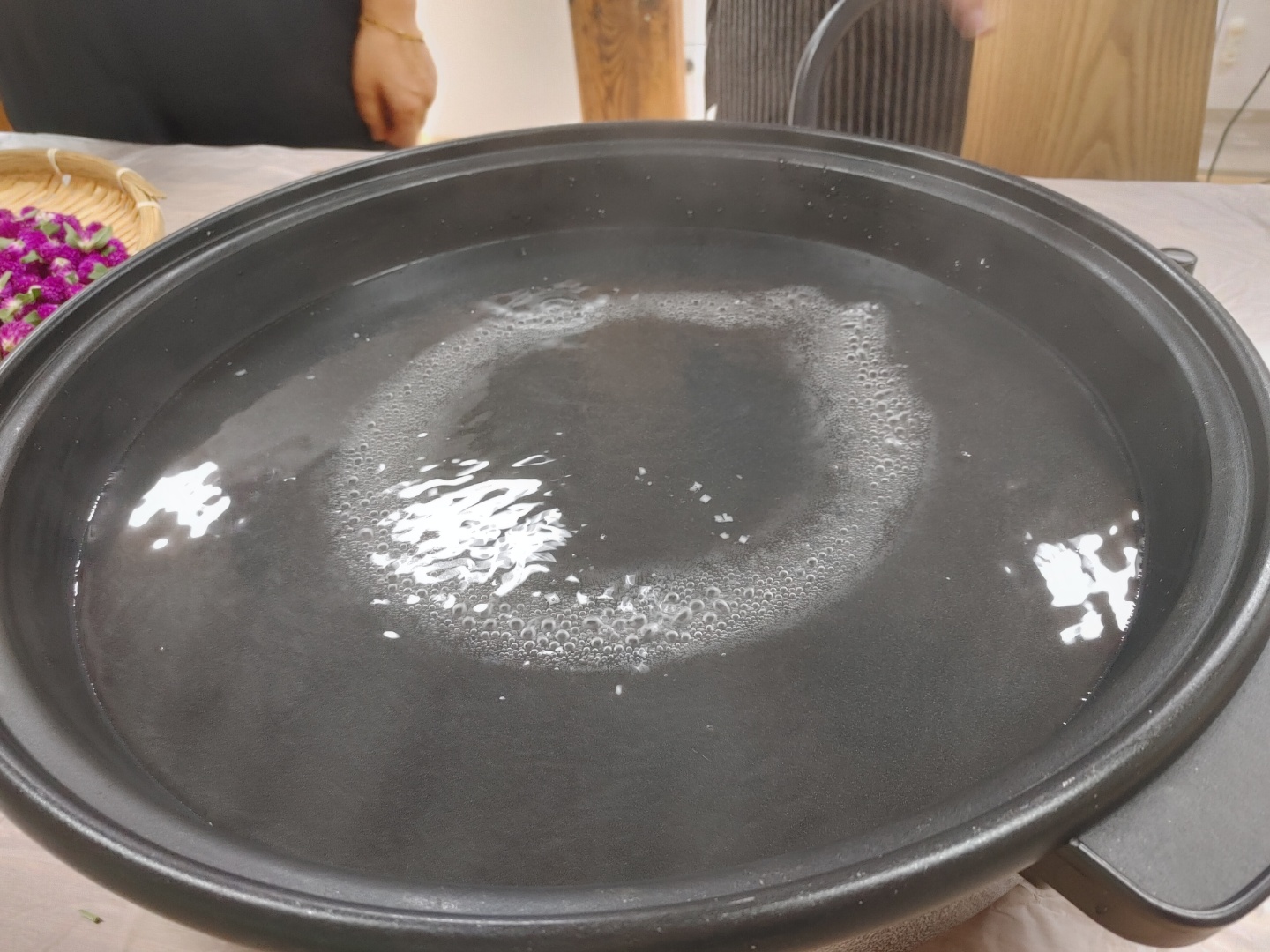 *처음과 달리 덖음과 식힘을 반복하면 보라색이 붉은색으로 바뀌어 간다.