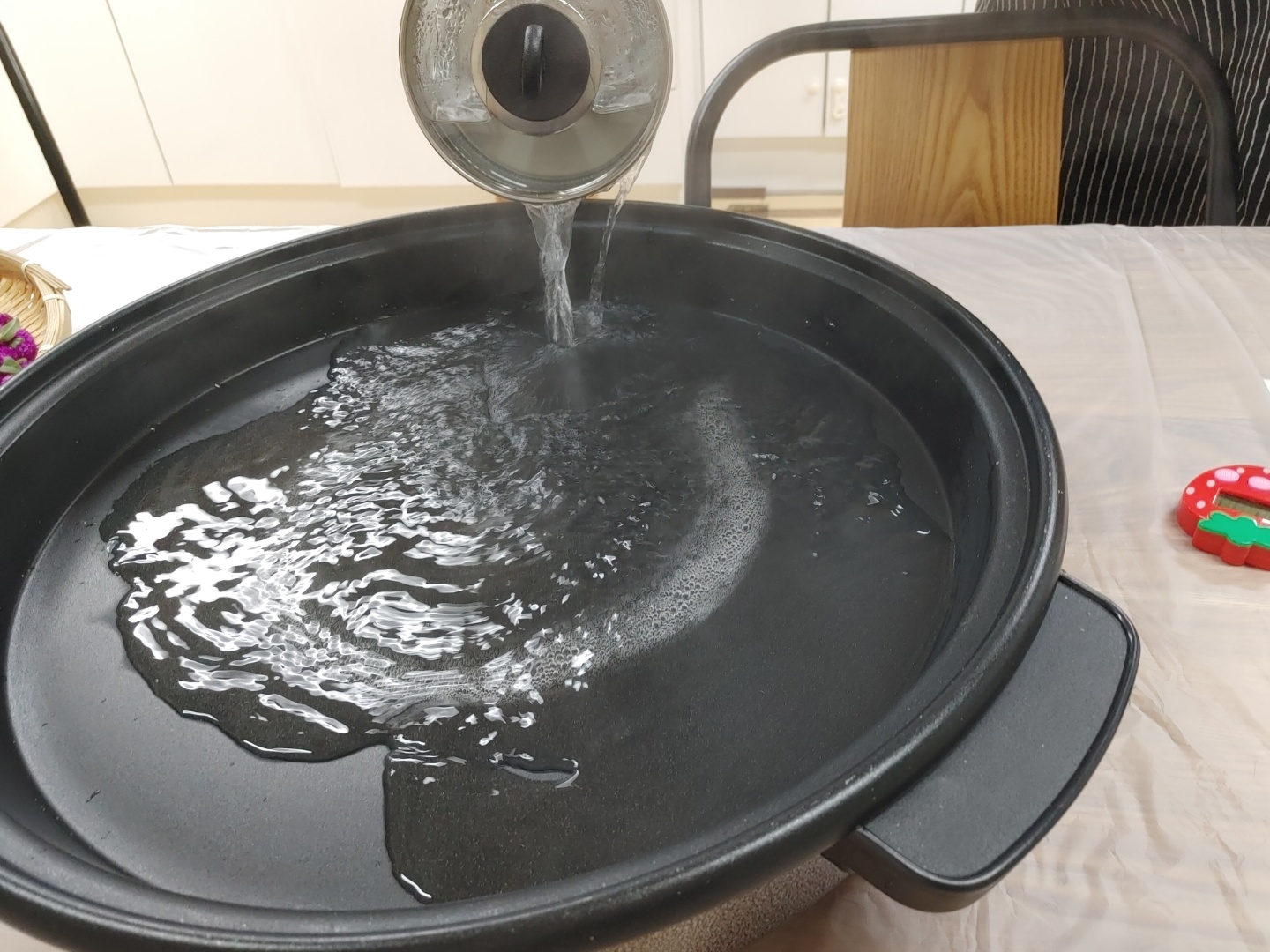 6. 거의 다 말랐으면 팬온도 f점에 두고 뚜껑 닫아 뚜껑에 수분이 없으면 뚜껑 덮은 상태로 향매김을 해 완성한다.