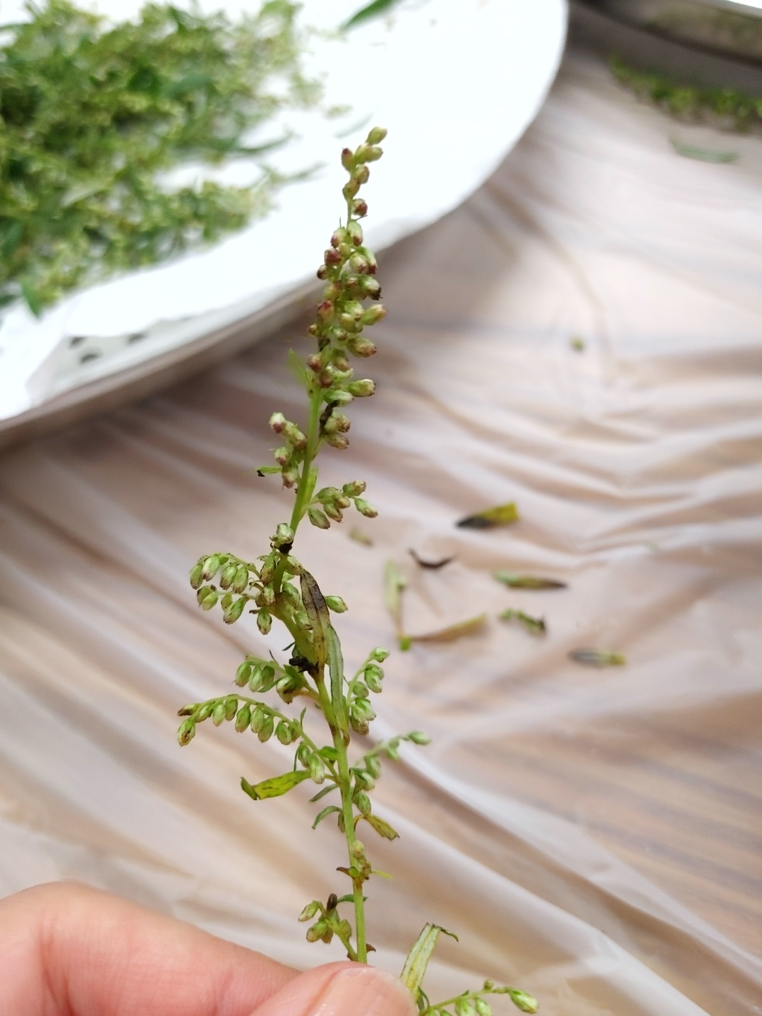 1. 꽃 봉우리를 훑듯이 손질한다. (큰 줄기는 빼고 곁에 난 작은 줄기만 떼어낸다.)