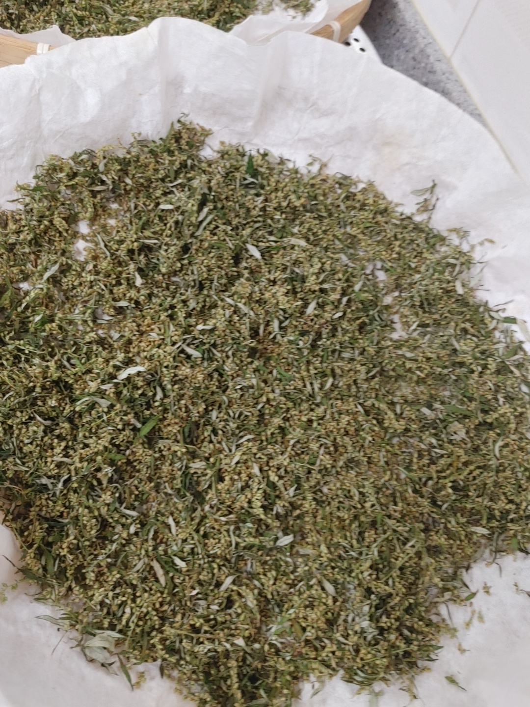 쑥꽃은 소금 1%첨가한 물에 담갔다 흐르는 불에 헹궤 하루말린다.